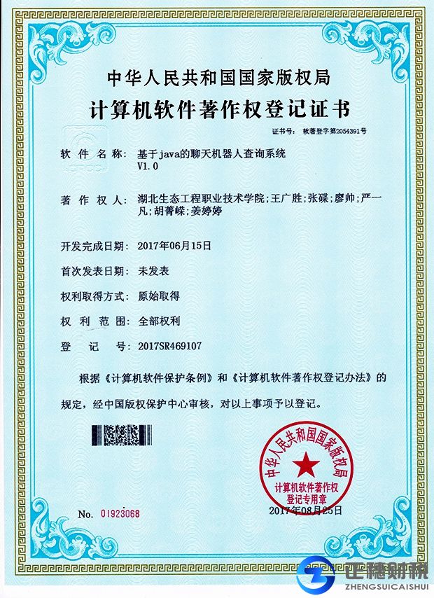 計算機軟件著作權(quán)登記證書