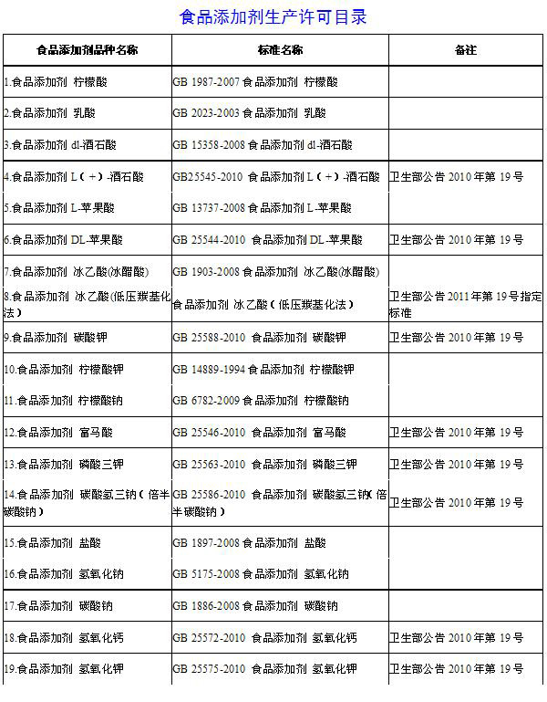 廣州食品添加劑生產(chǎn)許可目錄